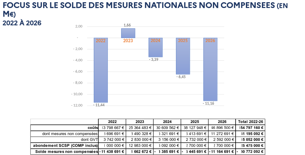 La trajectoire budgétaire de l’université de Lille est également affectée par la succession de mesures gouvernementales qui n’ont été que partiellement compensées (cas emblématique du dégel du point d’indice en 2022 de 3,5 points qui n’a pas été compensé en 2022 sur 6 mois), avec de grandes incertitudes concernant le financement de la Protection Sociale Complémentaire (chiffré à hauteur de 1,5M €), le versement du solde du COMP (20% du total, 2,2M € en attente) ou encore la compensation de l’augmentation du CAS pension (+4 points), l’octroi systématique de 5 points d’indice majoré pour l’ensemble des agents (non compensé). Sur le moyen terme, cette non compensation grève les comptes de l’Université qui doit faire face à une augmentation importante des prix des fluides, à un chantier patrimonial colossal (rénovation des bâtiments, désamiantage, mise en sécurité des bâtiments) tout en devant assurer le versement des salaires !